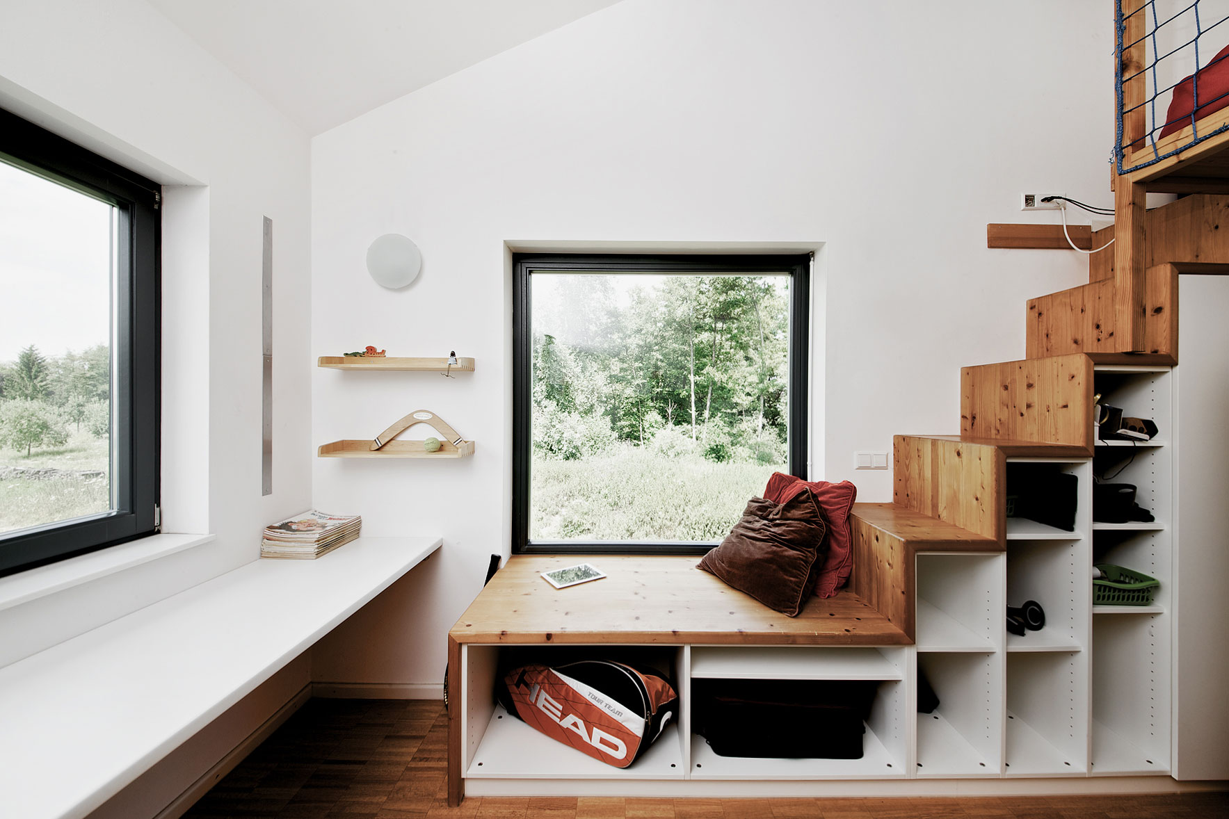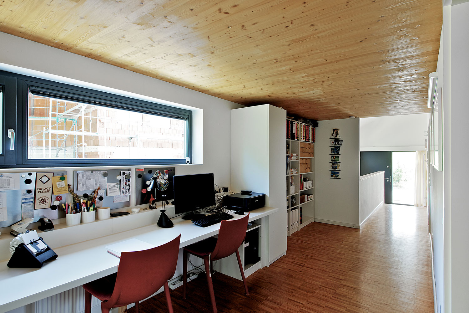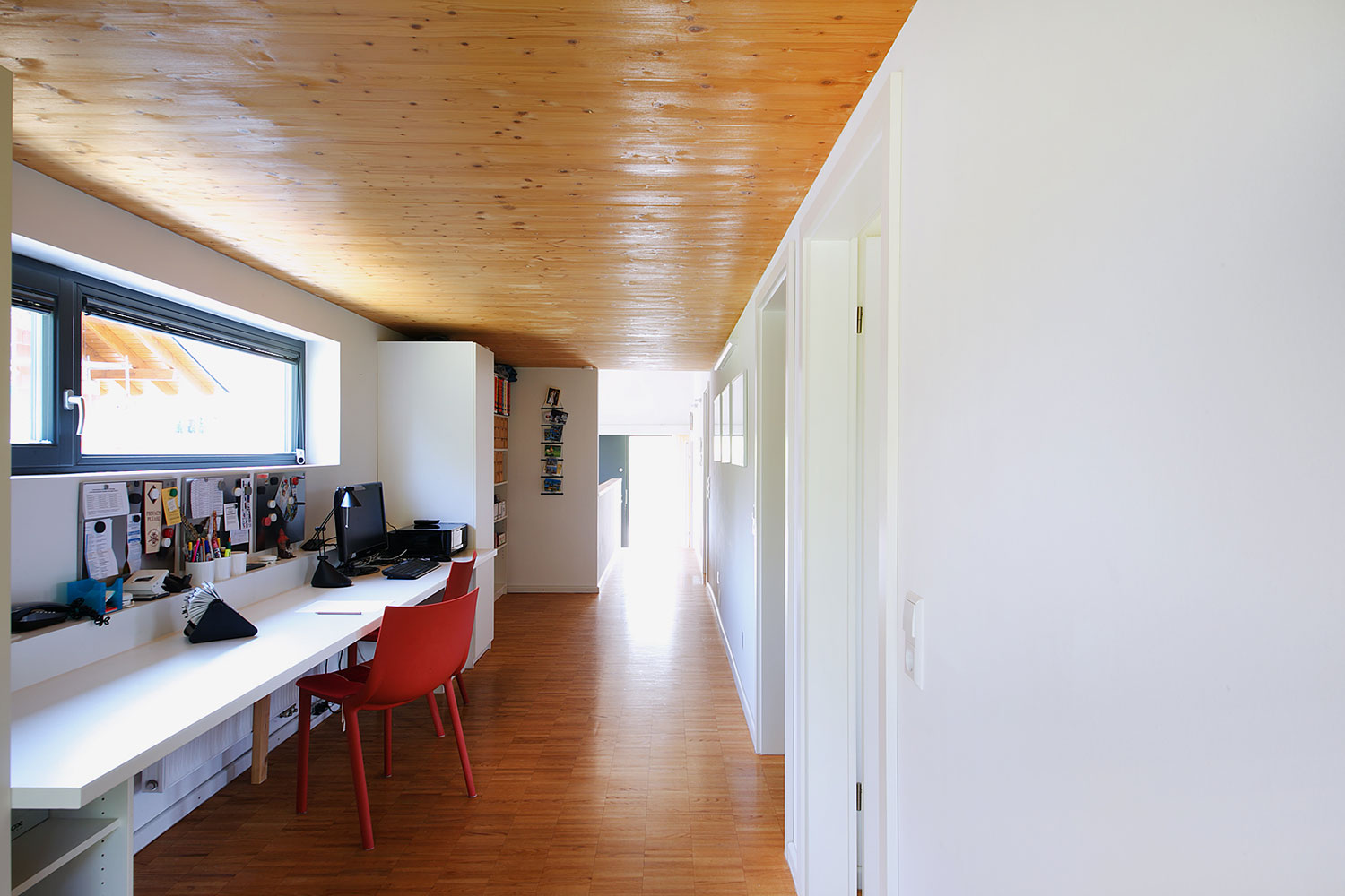 Im Obergeschoss wird der Flur als Arbeitsbereich genutzt, ansonsten liegen hier die Schlafräume und 2 Bäder. Die Kinder erhalten in Ihren Zimmern eine belichtete Hochbettebene.