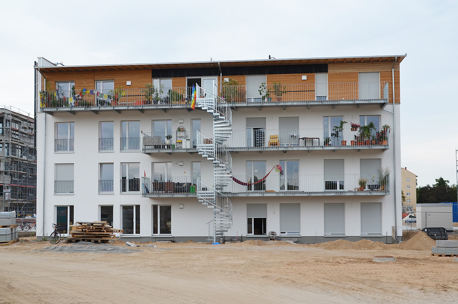 Das Motto der Bewohner dieses Geschosswohnungsbaus lautet "Zusammen wohnen und leben".