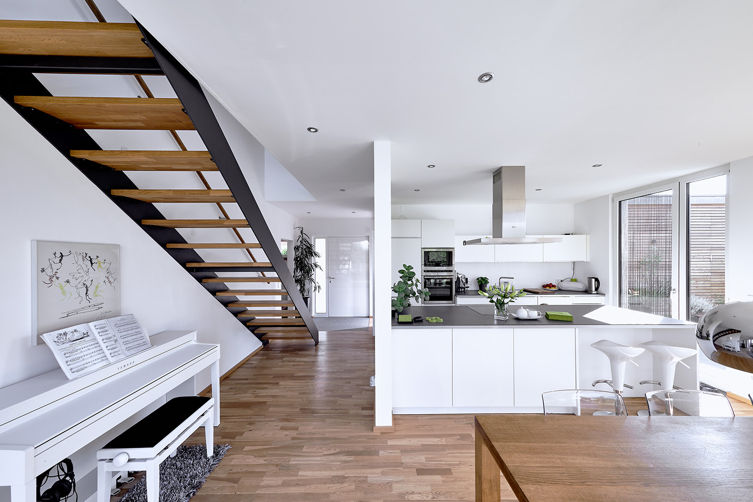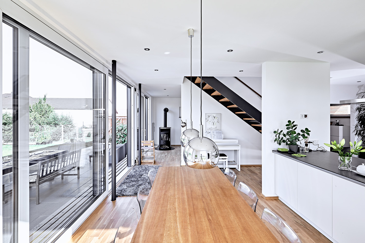 Familie H wünschte sich ein modernes Einfamilienhaus mit viel Licht und Bezug zum Garten.