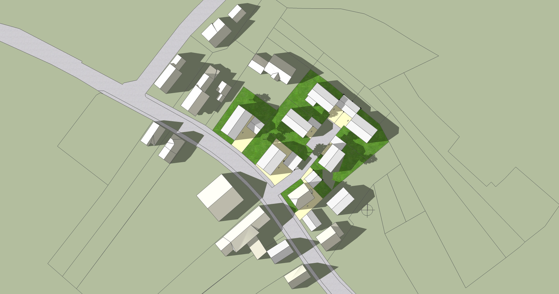 Unser Büro ist davon überzeugt, dass solche Planungen in Zukunft für Gemeinden ein großes Potential bergen. Die Ausweisung von Neubaugebieten wird in Zukunft seltener, bestehende Bebauungen sind für einzelne Interessenten oft zu groß und damit nicht bezahlbar. Zudem ist die 2.-Reihebebauung oftmals nicht optimal erschließbar.